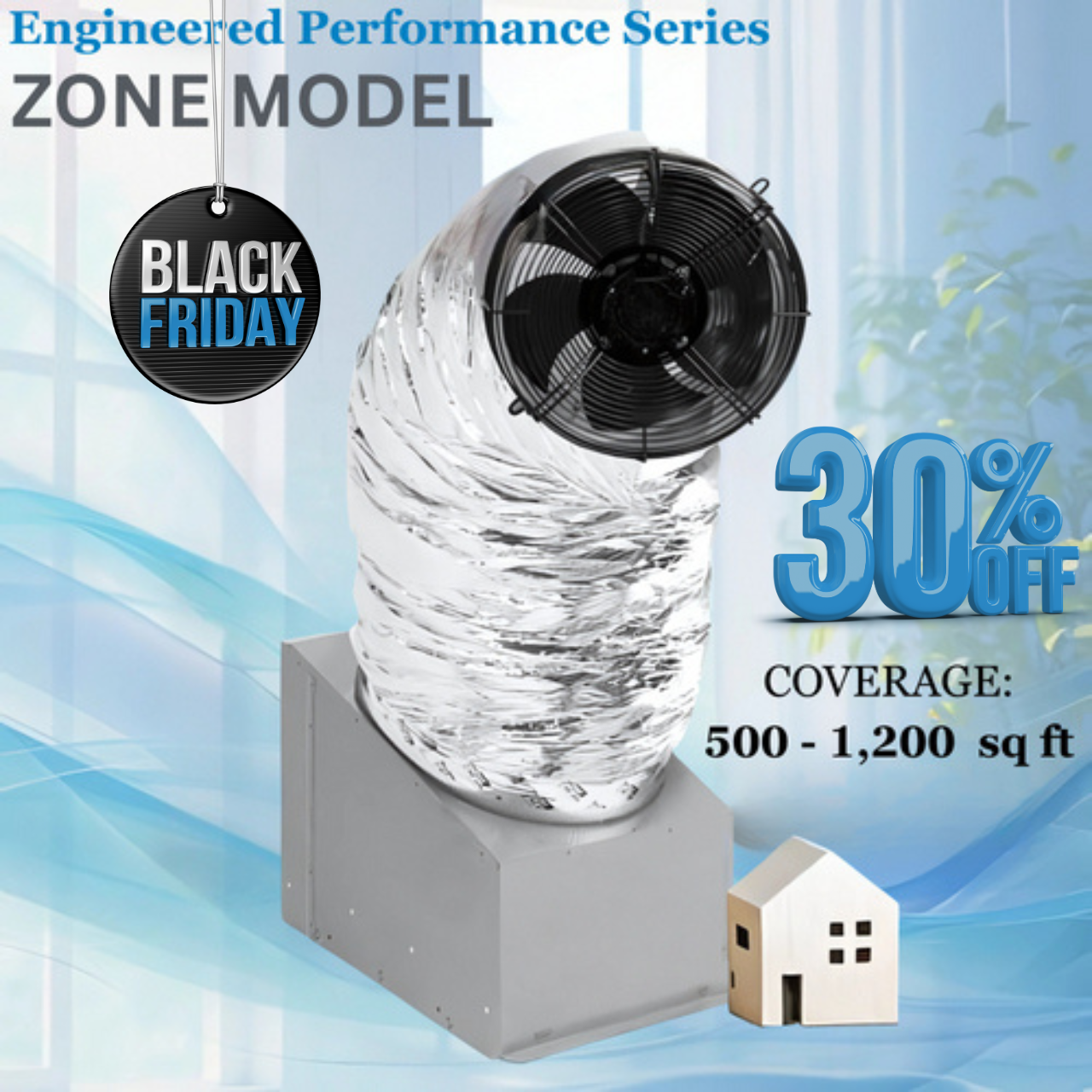 Perfect for smaller homes (500–1,200 sq. ft.) or targeted zones in larger homes, the EPS Zone model is ideal when you want to cool specific areas efficiently. And for larger homes, multiple EPS Zone fans can be installed to deliver precision cooling, providing powerful airflow exactly where you need it most — without overcooling unused spaces.
